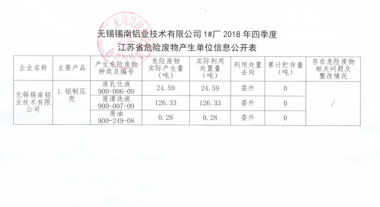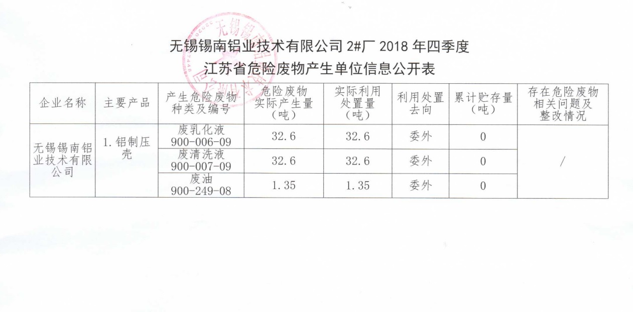 江蘇省危險廢物產生單位信息公開表(四季度)